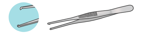 有鉤鑷子皮膚・皮下組織・筋層など皮膚・皮下組織・筋層・靭帯など硬い組織に用いる。