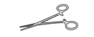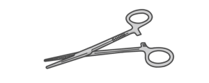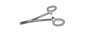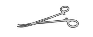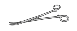 ケリー鉗子剥離対象の組織など柄が長めの鉗子。ケリー鉗子は、ペアン鉗子よりも細身でしなりがあり、組織の把持や剝離に用いられる。