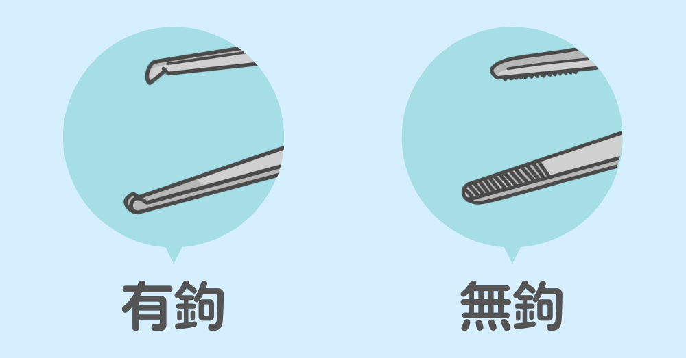 有鉤の鑷子は、腸管や血管などの軟らか組織を把持すると鉤が噛み合うことで組織が挫滅してしまう!