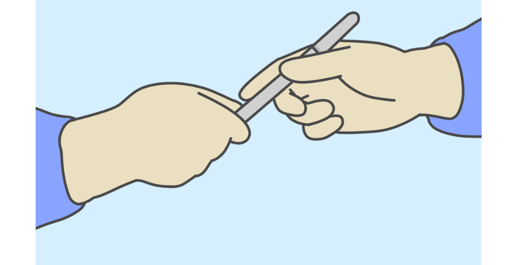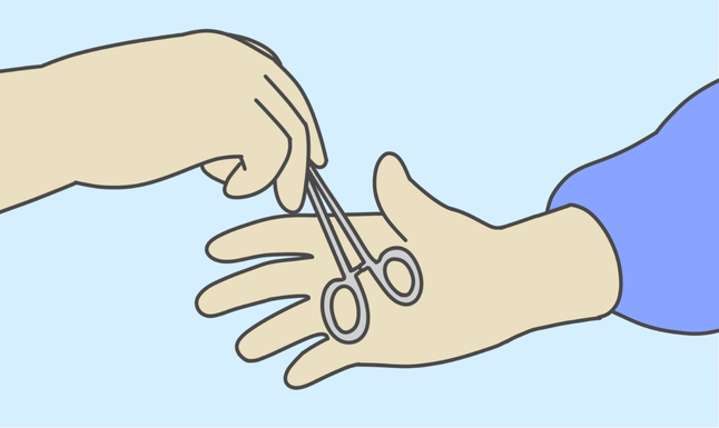 鑷子に限らず、手術中、無言で手を差し出されることがあります。