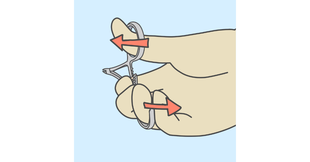 ラチェットを外す際は、母指を押して環指を引くのがポイントです。